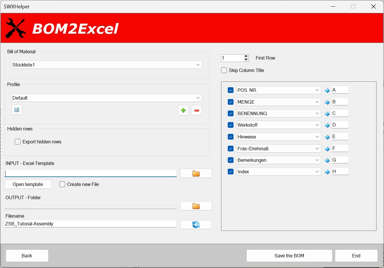 • Update: (BOM2Excel) Benutzerführung wurde verbessert